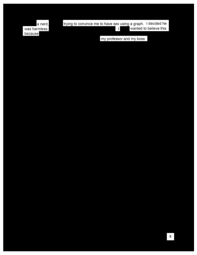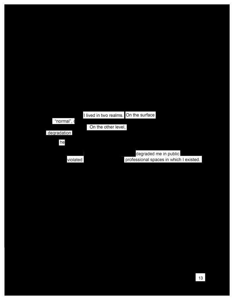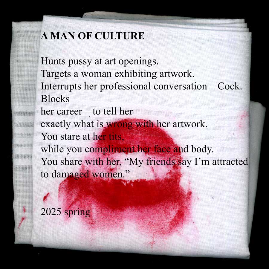 Those words stop you until a woman calls. She was raped. She shares the word that the litigators drilled into her so profoundly that it echoes through her decades: “controlling.” Another raped woman calls. Another courtroom. The word they threw at her was “nasty.” One woman didn’t go to court. She fell silent after her fiancé called her “a dumb cunt” for “getting herself” raped. You know her fiancé. People refer to him as “a nice guy.” There is one word that they call all of you: “liar.”