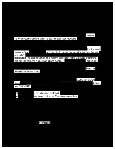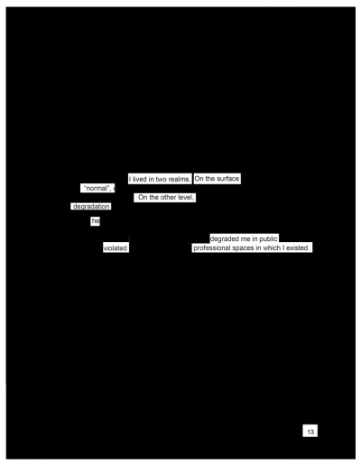 You’ve shored up your defenses, shielding yourself from the words hurled at you in court, in social media, and in the mainstream press. Nevertheless, some pierce the net of your chainmail: young, beautiful, sexy, smart, hot, prude, flirt, oversexed, trouble, damaged, transgressive, hysterical, bitch, suspect, strategic, orchestrating, deceptive, liar, calculating, hostile, vicious, vile.